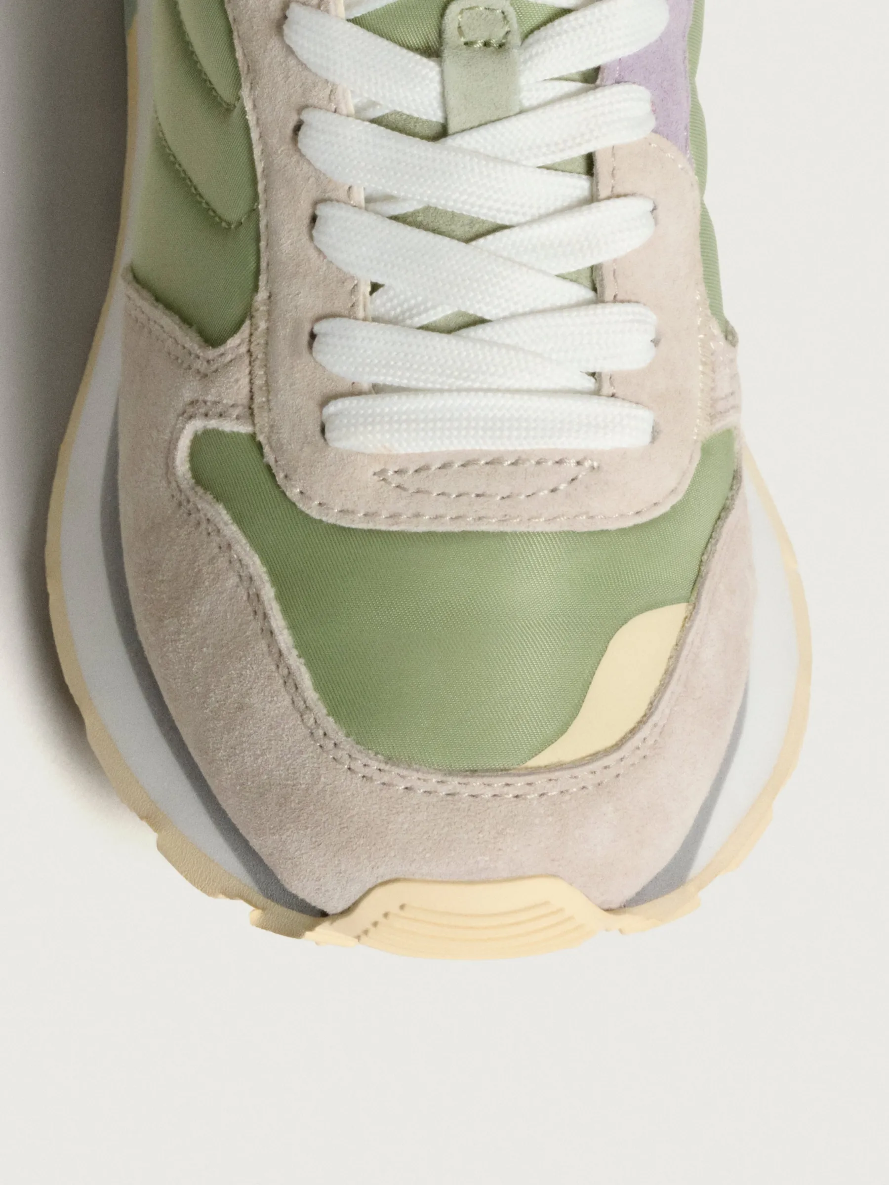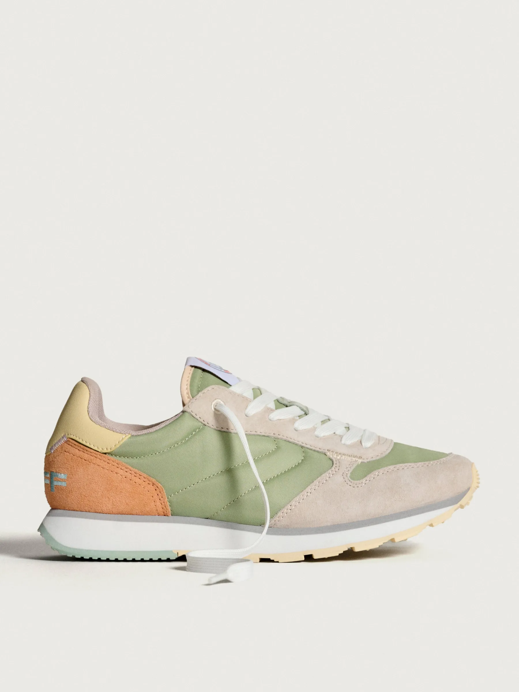 Für Liebhaber des Retro- und Vintage-Stils sind die DELPHI aus aquagrünem Nylon mit asymmetrischen Details aus lilafarbenem und orangefarbenem Wildleder die perfekte Mischung, um überall aufzufallen. Das mausgraue Veloursleder auf der Vorderseite und das pastellgelbe Leder verleihen ihm einen hochwertigen Touch. Die Sohle mit Waffelmuster in Aquamarin und zartem Gelb sowie das Logo der Gegenmarke sind das Tüpfelchen auf dem i. Leicht und bequem dank der Memory-Foam-Einlegesohle. Perfekt zum Kombinieren mit klassischen Jeans und Ihrem Lieblings-T-Shirt.Stil: Laufschuh.Sohlenhöhe: 3 cm.