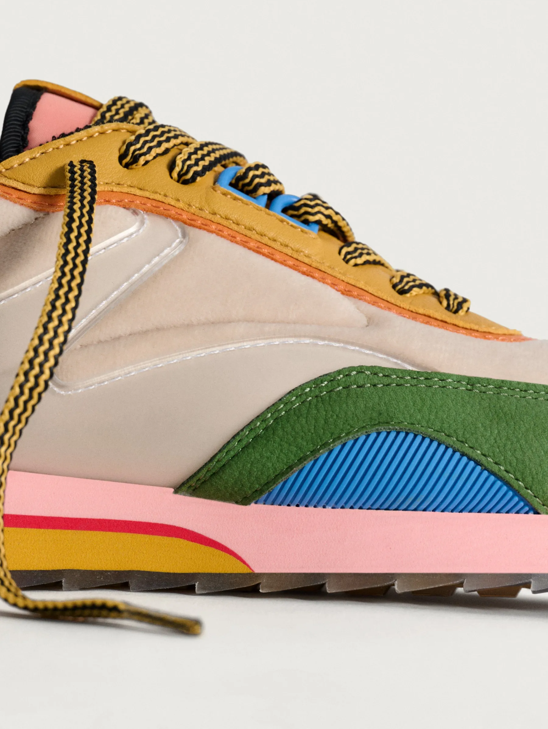 Kunst und Mode verschmelzen in der Kollektion ART X ABBEY LOSSING. Diese Sneakers spiegeln die Inspiration der Illustratorin wider und vereinen ihre Liebe zu Farben, Mustern und Formen. Die IRIS kombinieren Materialien wie Wildleder, Samt und Gummidetails. Das Farbenspiel, wie Nude, Tannengrün im Kontrast zu Schwarz und Rosa, macht sie zu einem Kunstwerk an sich. Sie haben dank ihrer Silhouette und der bedruckten Waffelsohle einen Retro-Touch. Außerdem sind sie ideal und bequem durch die Memory-Foam®-Innensohle. Diese Sneakers sind perfekt, um deinem Look eine einzigartige Note zu verleihen. Kombiniere sie mit einem einfarbigen Kleid oder Rock und hebe dich überall hervor.