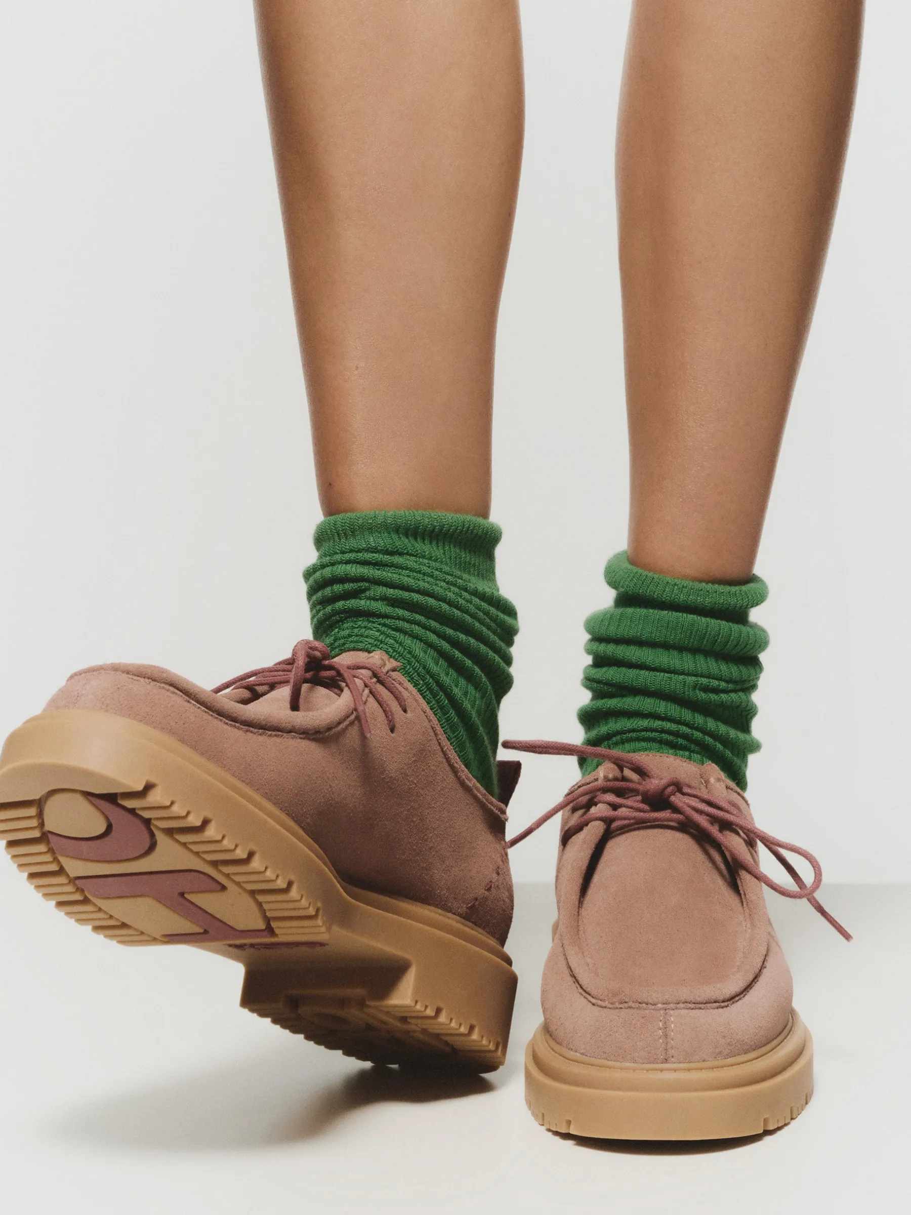Die CONCERT ROSA fängt den klassischen Charme mit einem minimalistischen Touch ein. Hergestellt aus rosafarbenem Wildleder und mit einer klobigen Gummisohle versehen, bieten diese Mokassins eine zeitgemäßere Version des traditionellen Stils. Perfekt, um den preppy Look mit einem modernen Twist zu redefinieren, kombiniert mit Knöchelsocken.