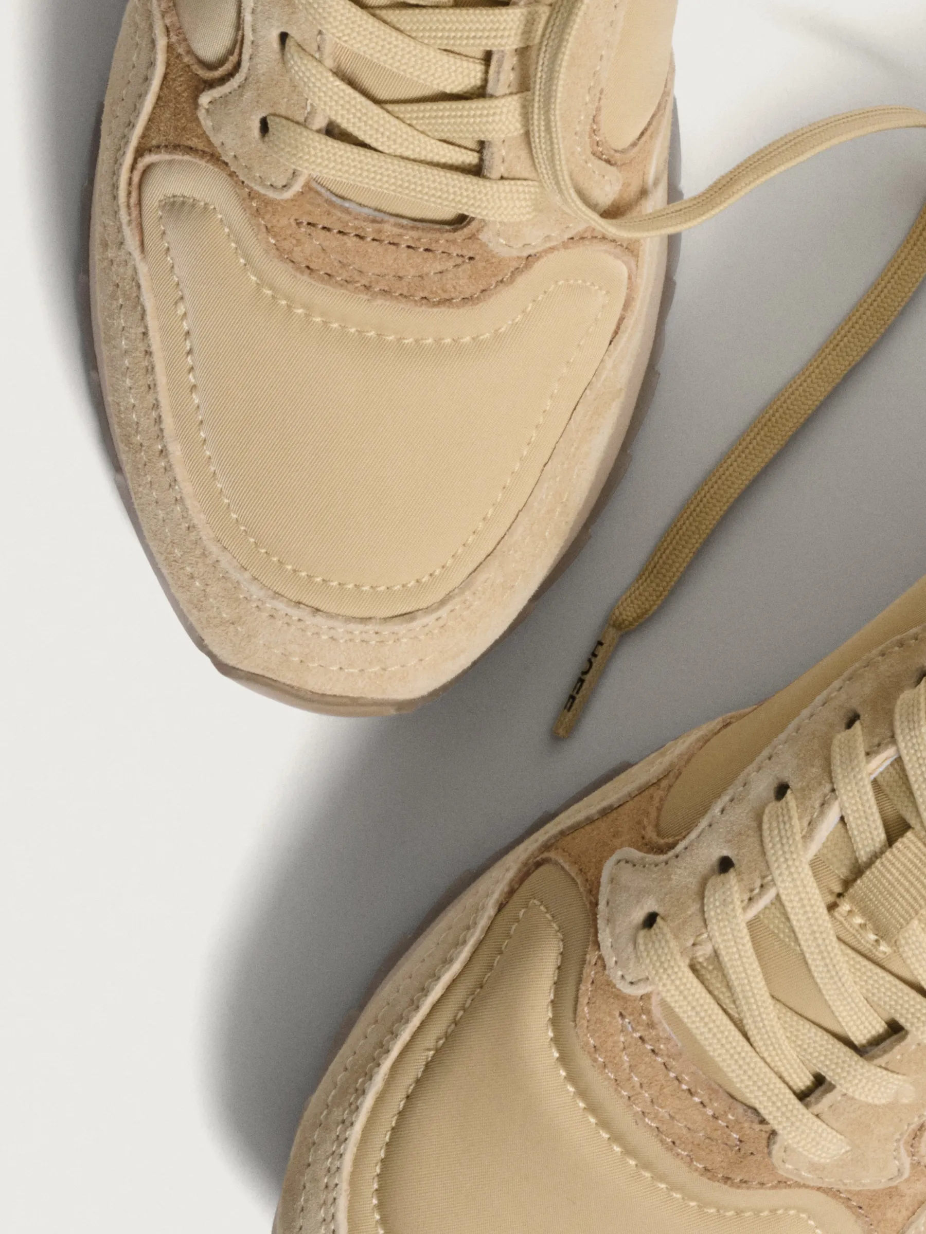 Die Trieste-Sneaker zeichnen sich durch eine Kombination aus Khaki-Tönen im Kontrast zu einem schwarzen Lederabsatz aus, was ihnen einen neutralen und eleganten Look verleiht. Diese aus Leder und Samt gefertigten Sneaker bieten sowohl Stil als auch Komfort. Die Sohle sorgt für einen sicheren und bequemen Auftritt, während die Memory Foam(R)-Einlegesohle für Dämpfung sorgt. Vervollständigen Sie Ihren Look, indem Sie diese Sneakers mit Jeans und einem Leinenhemd für einen lässigen und raffinierten Stil oder mit einem Anzug für einen eleganten Touch bei formelleren Anlässen kombinieren.