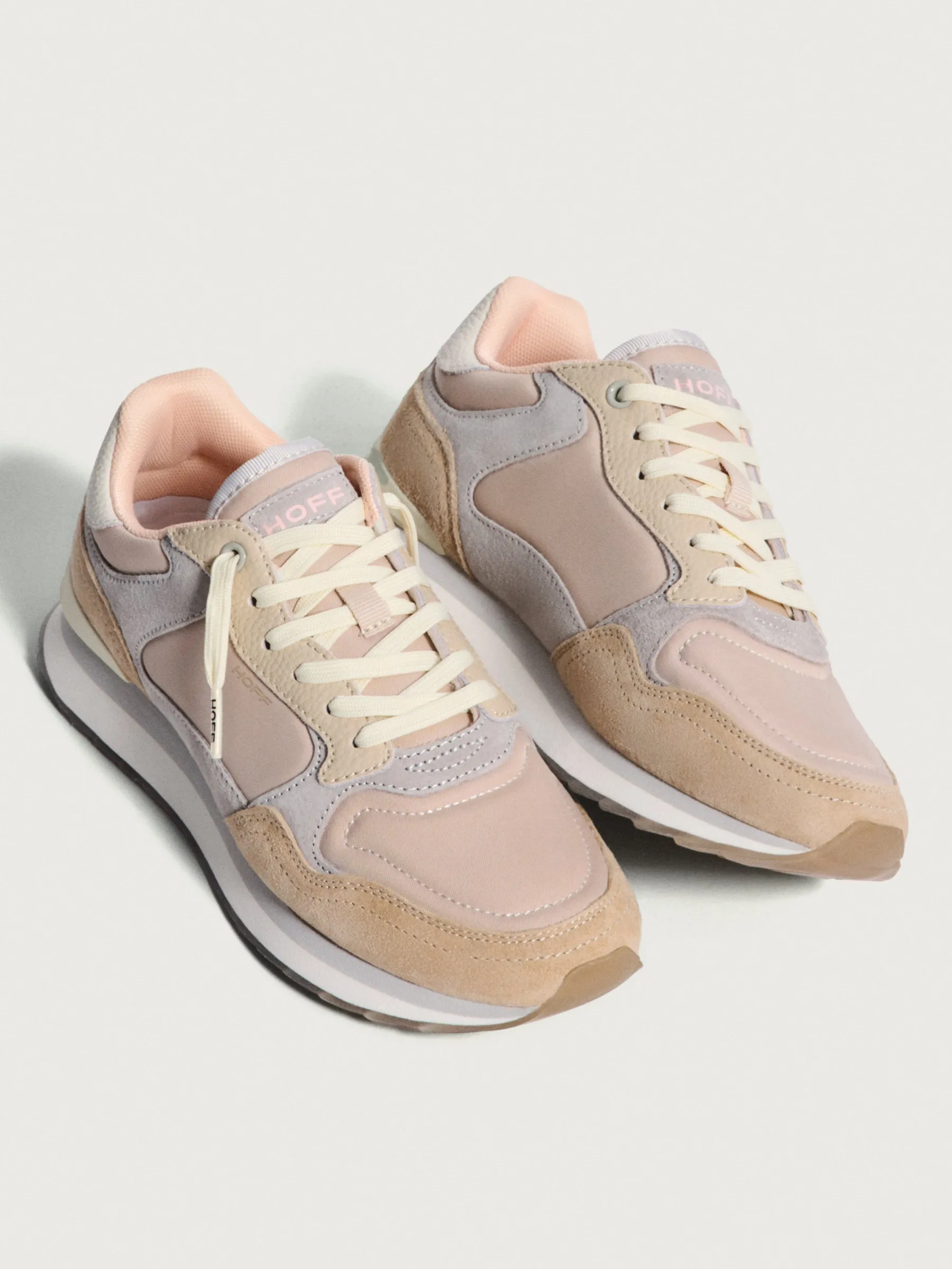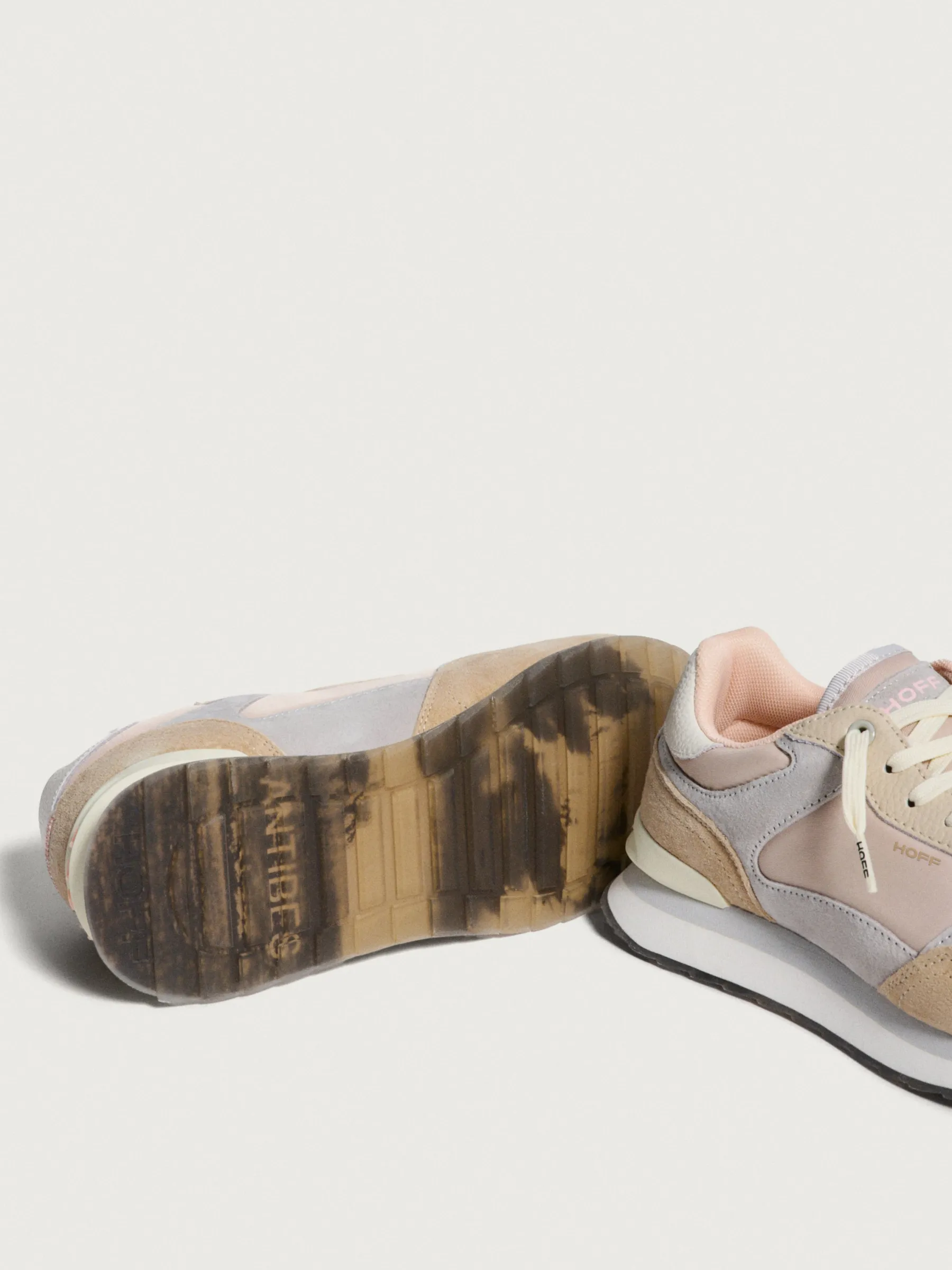 Mit einem von der Stadt ANTIBES inspirierten Design. Diese Turnschuhe sind dank ihrer Farbpalette aus Nude-, Rosenholz-, Khaki- und Grautönen die perfekte Kombination. Der Mix aus Materialien wie Wildleder, Stoff und kontrastierendem Gummi macht sie zu einem vielseitigen Stück mit einem unverwechselbaren Design für Ihre Looks. Sie haben einen gesteppten Effekt auf der Vorderseite des Ton-in-Ton-Stoffes und eine Dosis Komfort dank der Memory Foam-Einlegesohle. Lassen Sie sich die Essenz jedes Schuhs auf der Sohle nicht entgehen und werten Sie Ihre Streetwear auf.Stil: Sneaker-Stil.Höhe der Sohle: 3 cm.