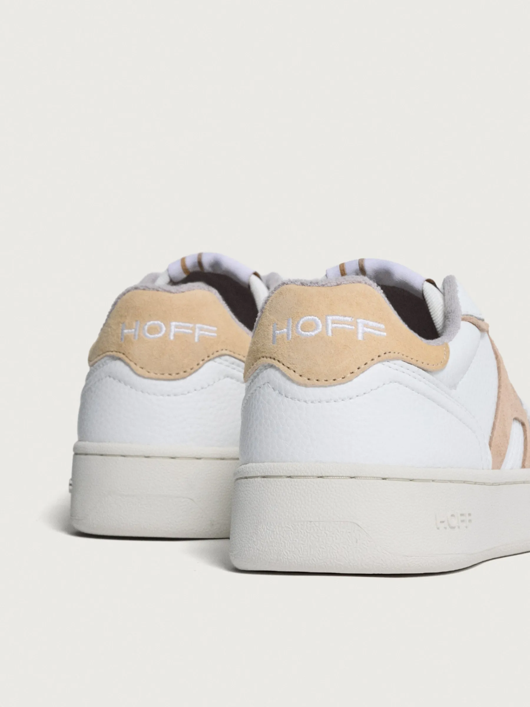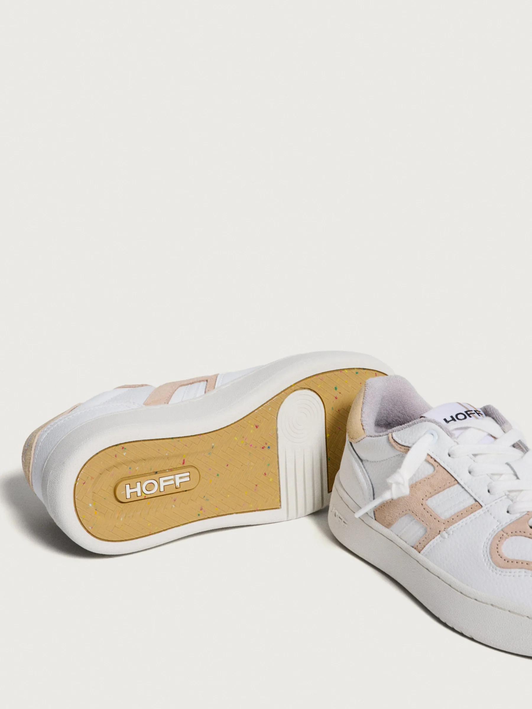 Inspiriert von der Saison CONVENT GARDEN, verbindet dieses Modell Funktionalität und Modernität in seinem sportlichen Design. Sein Bamba-Skate-Stil zeichnet sich durch einfarbige Lederdetails aus, die im Kontrast zum Camel-Ton an den Seiten und vorne stehen. Dank der Einlegesohle aus Memory Foam sind die Schuhe sehr bequem zu laufen. Die Laufsohle aus recyceltem Gummi imitiert die Rauheit des Straßenbelags der Saison und ist mit marmorierten Details versehen. Das gestickte Logo auf der Rückseite ist das Erkennungszeichen der Marke. Perfekt für die Vielseitigkeit, die es erlaubt, sie zu jedem Look zu tragen, sei es ein Rock oder eine Jeans.Stil: Trainer im Bamba-Stil.Höhe der Sohle: 3,5 cm.