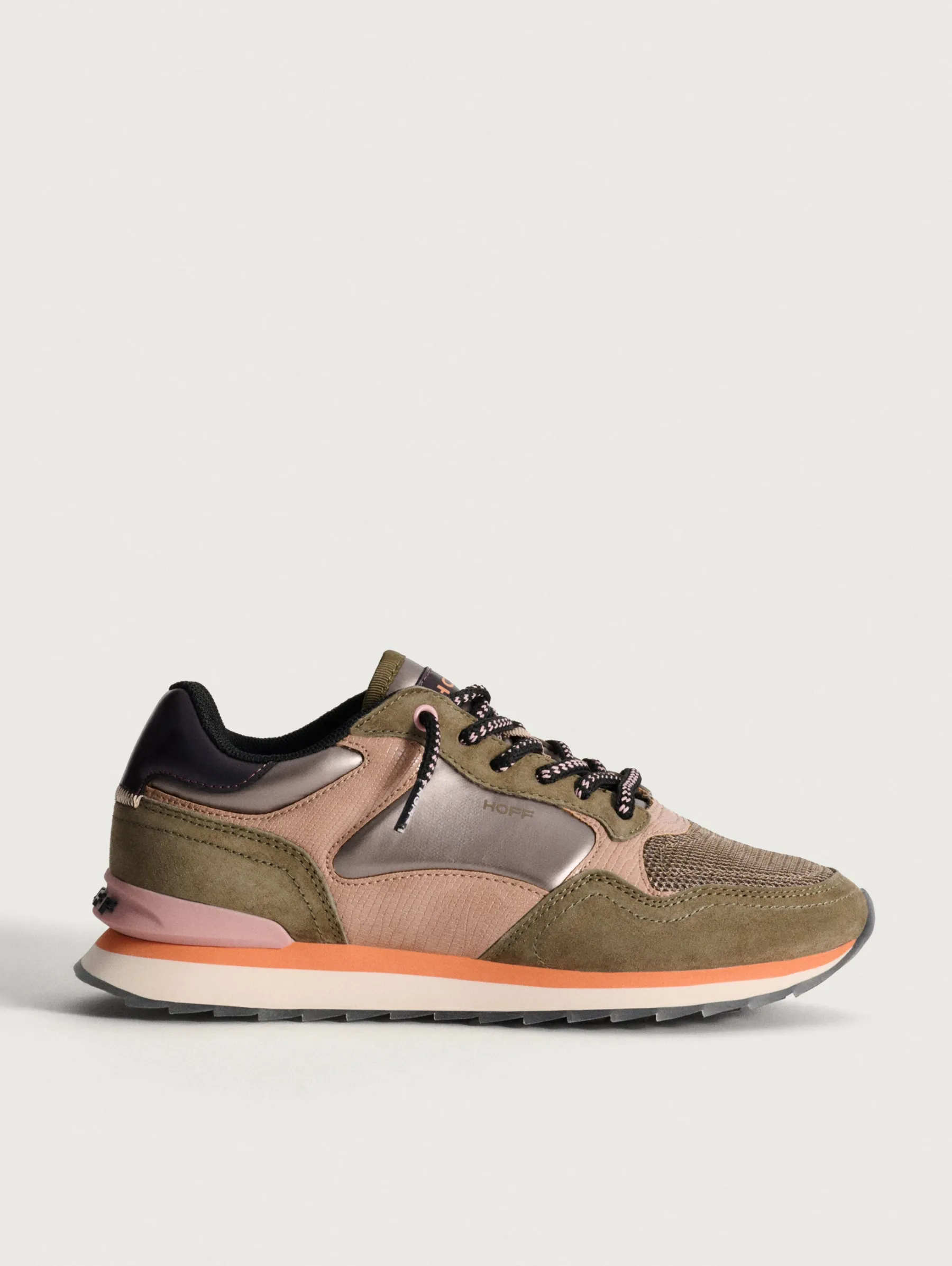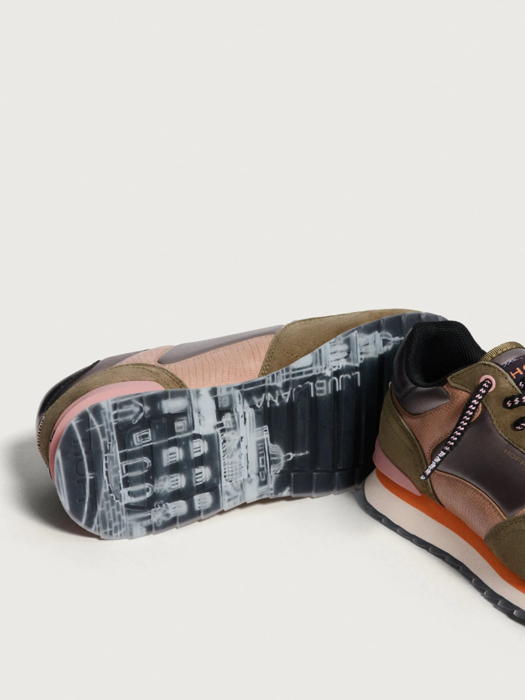 Diese Sneakers, inspiriert von Ljubljana, zeichnen sich durch ihr einzigartiges und modernes Design aus. Das Wildleder in Kieferngrün, das khakifarbene Schlangenmuster und die silbernen Akzente, zusammen mit einer orangenen Linie an der Sohle, machen sie wirklich besonders. Mit einer Kombination aus Leder, Nylon und synthetischem Material sind sie eine Mischung aus Stil und Komfort. Die Memory Foam®-Einlegesohle bietet außergewöhnlichen Komfort für den ganzen Tag. Kombiniere sie mit einem Oversize-T-Shirt für einen modernen und anspruchsvollen Look.