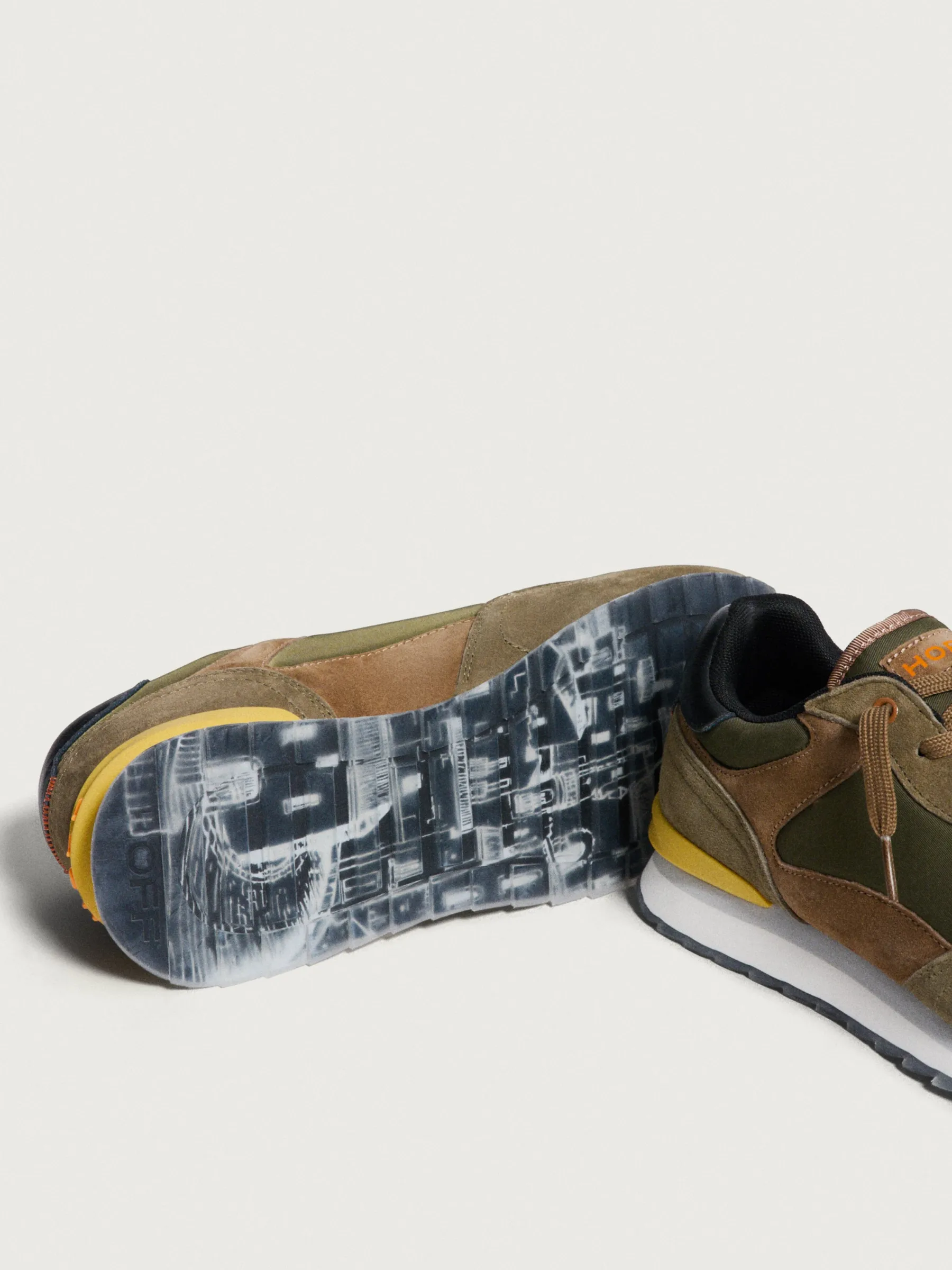 Entdecke die einzigartige Fusion von Kunst und Mode mit den Marseille-Sneakern aus der CITY-Kollektion. Diese Sneaker fangen die Essenz der französischen Stadt ein, indem sie Grüntöne und Khaki mit gelben Gummidetails kombinieren. Die Mischung aus Materialien wie Leder und Nylon macht sie zu einem vielseitigen Stück mit einem unverwechselbaren Design. Die ergonomische Sohle und die Memory-Foam®-Innensohle garantieren ganztägigen Komfort. Vervollständige deinen Stil mit diesen ikonischen Sneakern und hebe dich hervor, wo immer du gehst.
